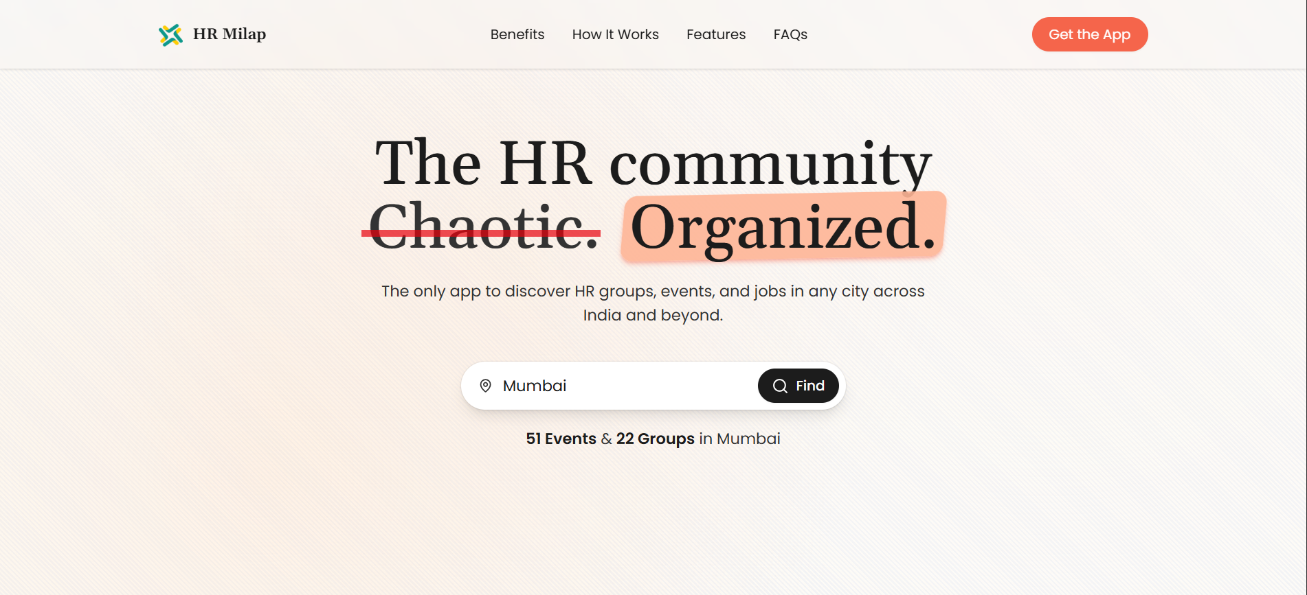 Landing page for an HR networking platform showcasing community, events, and membership.