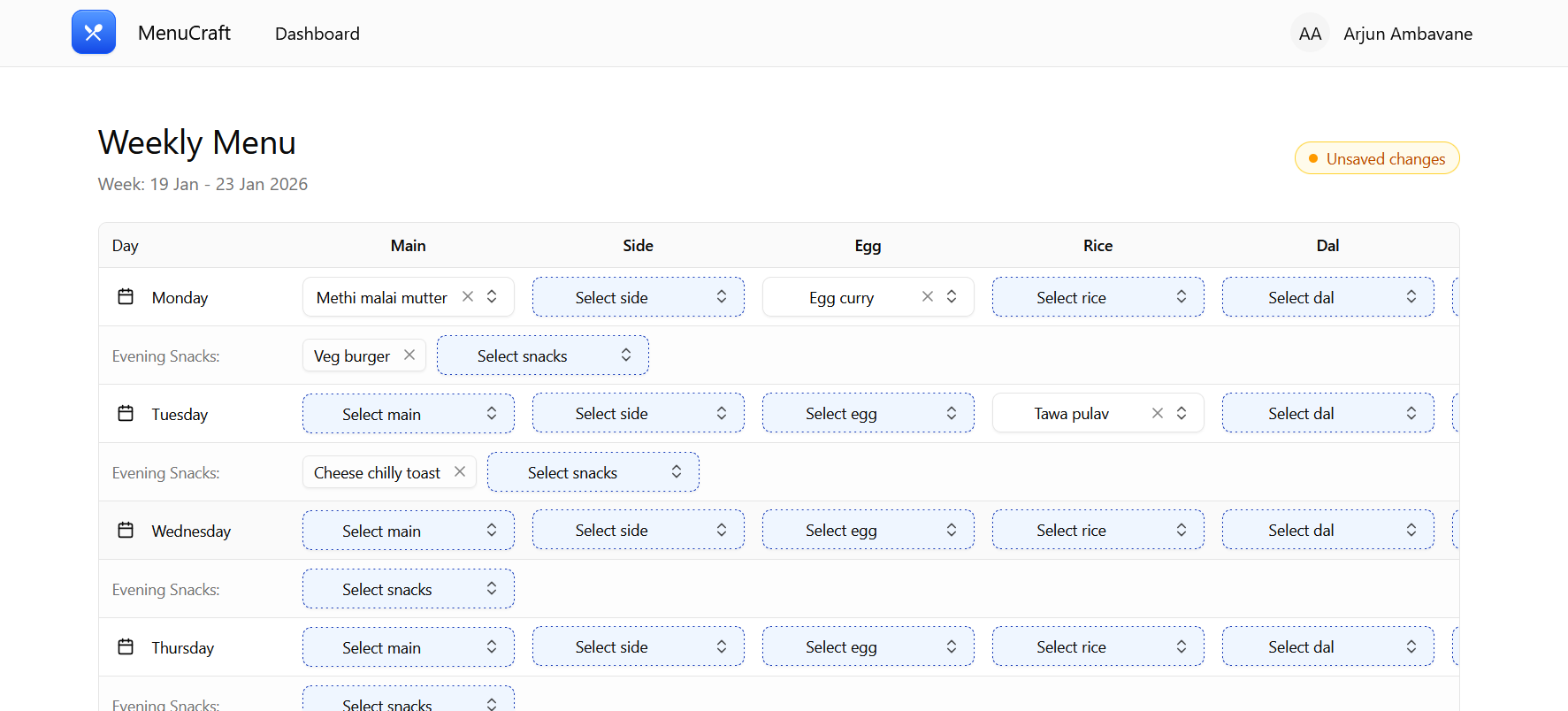 A web app for creating, managing, and sharing weekly office canteen menus without manual effort.